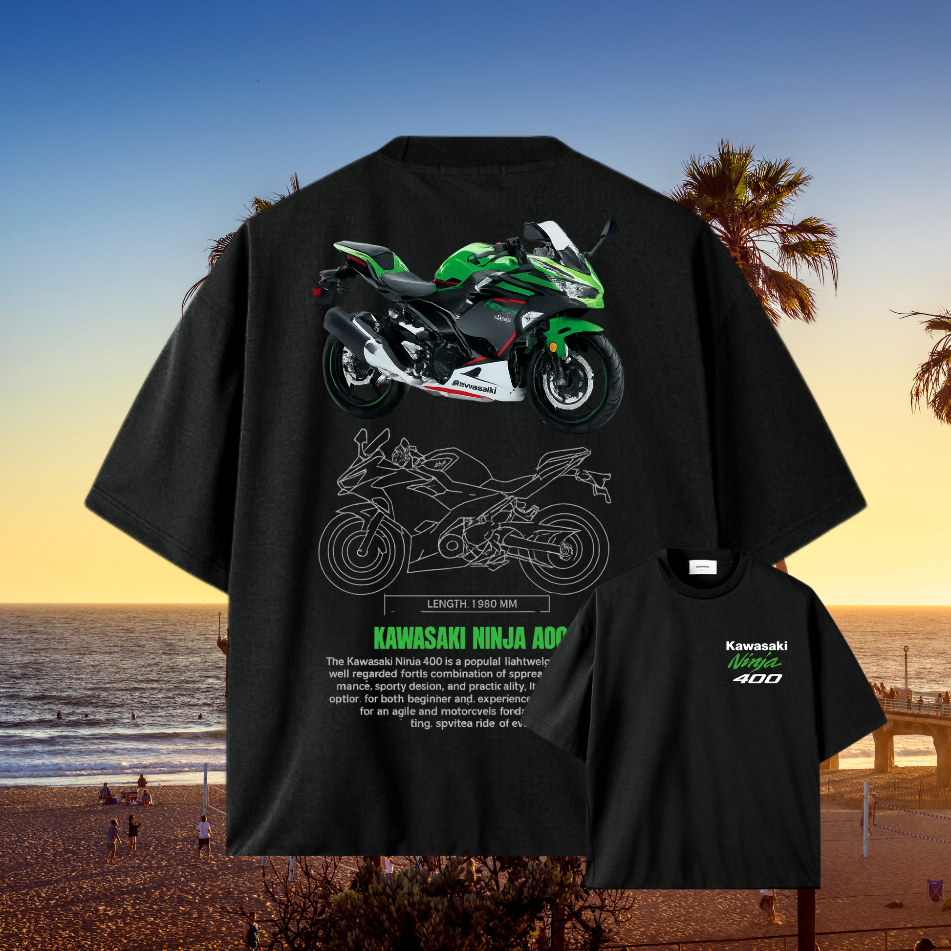 🏍️ Diseño vibrante con la icónica Ninja 400 en verde.